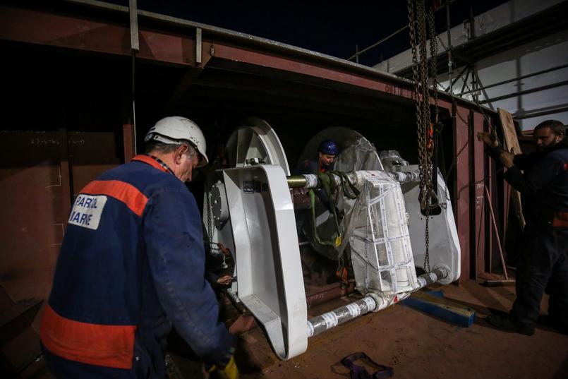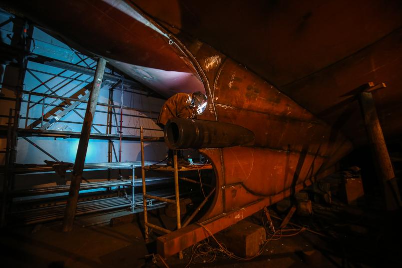 Work continues to prep for the installation of the propeller