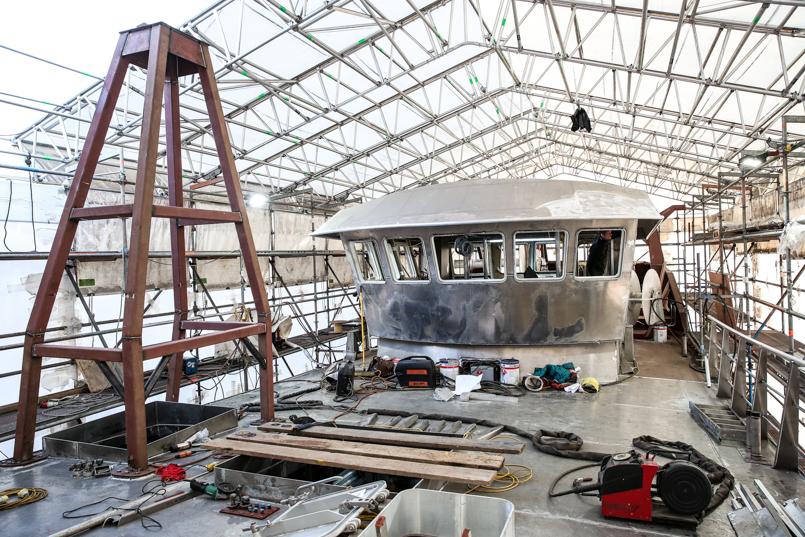 Floor of the wheelhouse being fitted by joiners