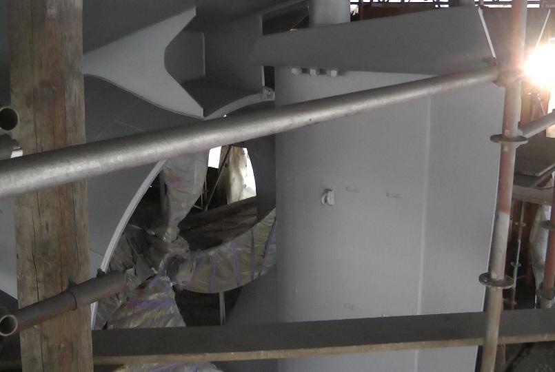 The hull following grit blasting and first coats of spray painting
