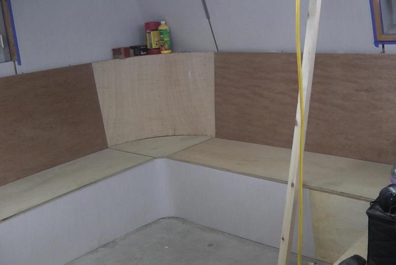 The seating in the mess area is taking shape