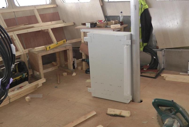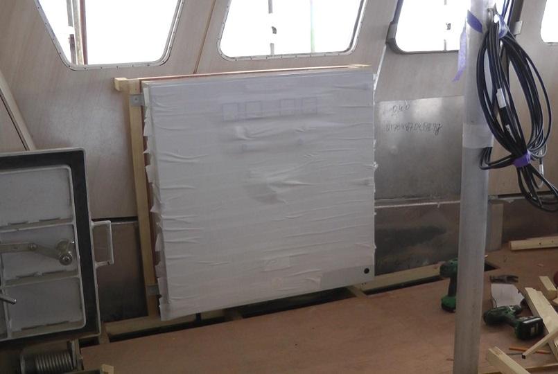The framework for the front (display) panel of the wheelhouse is almost complete