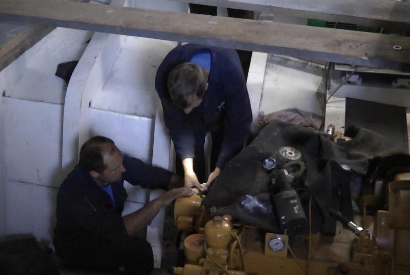 Working on the engine room pipework