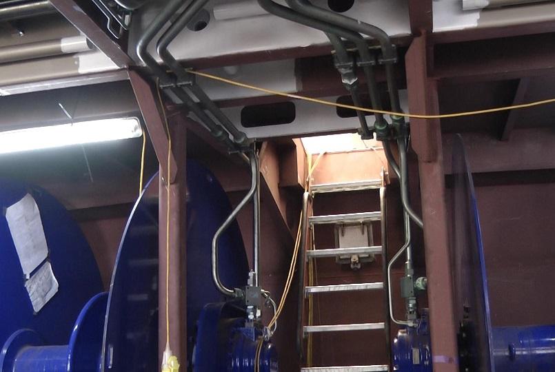 The hydraulic pipework to the net drums has been fitted