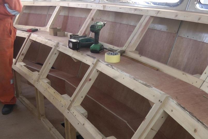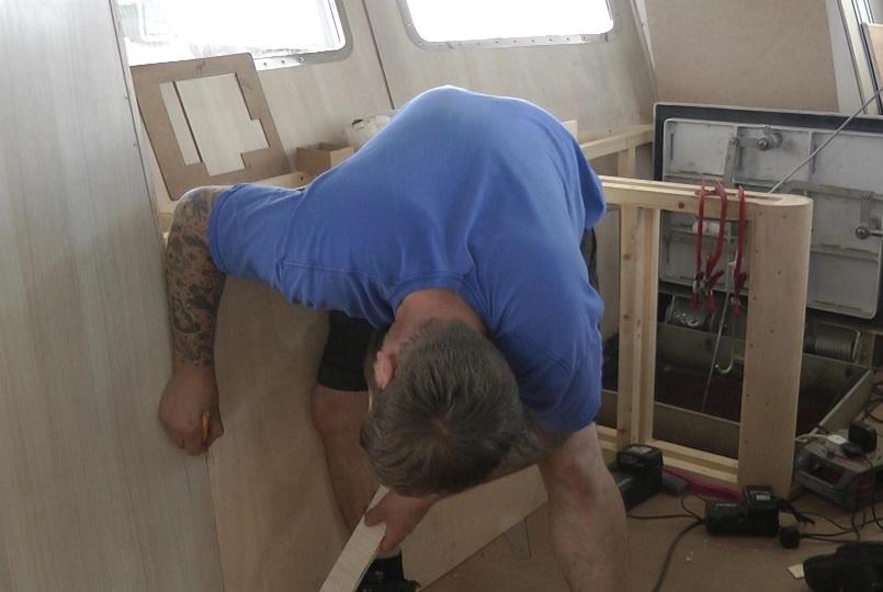 Panelling work continues in the wheelhouse
