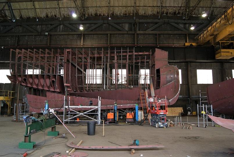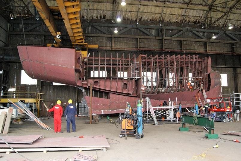 Building of the sides for the deck house has started