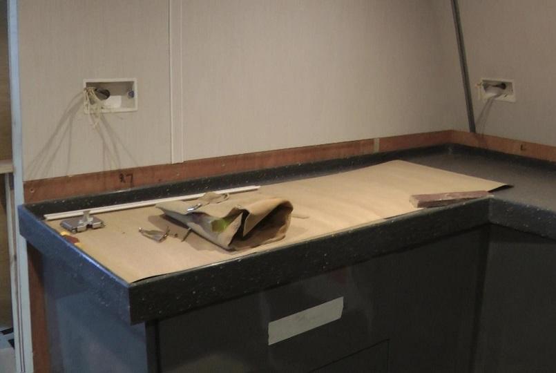 Worktops have now been fitted in the galley