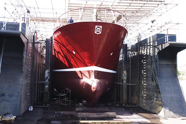 The fishing vesal Valhalla is due to arrive at Parkol to be lengthened by 7.5 metres. The mid section is now being built in the fabrication shed and is now photographed.