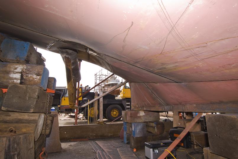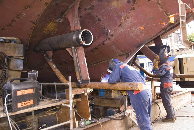 Fabricating protection bars for stern gear.