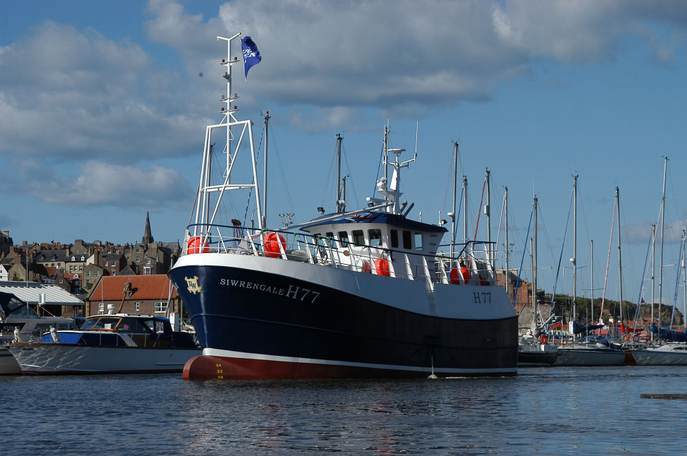 Steel hulled motor fishing vessel of double chine, transom stern, semi bulbous bow, soft nose stem and with full length shelter, arranged for static gear creel fishing, fitted with a vivier tank and dry hold, and manned by a crew of 6 men.