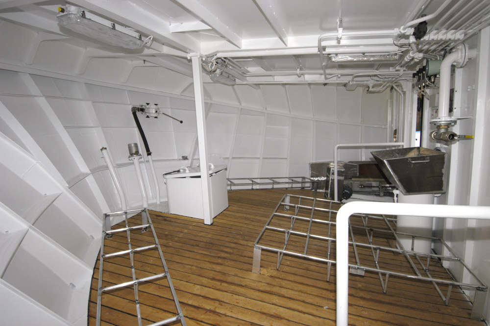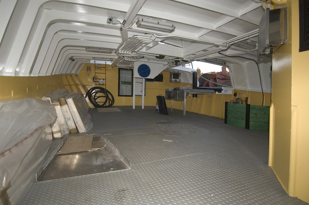Shelter deck fitted over the main deck, inboard of dredges, between deckhouse and focsle.