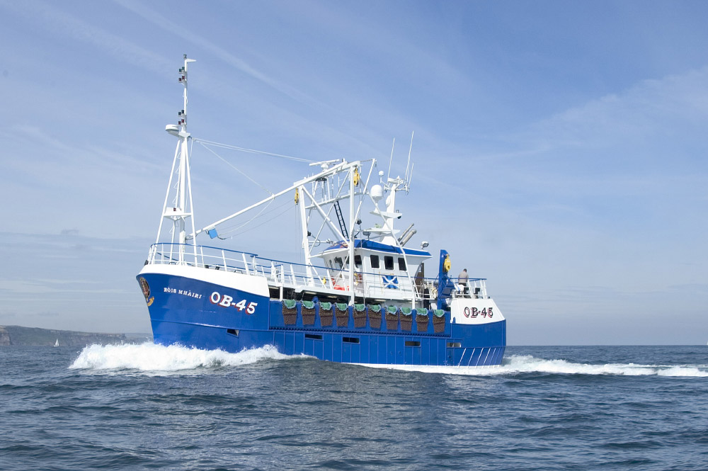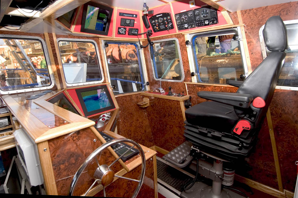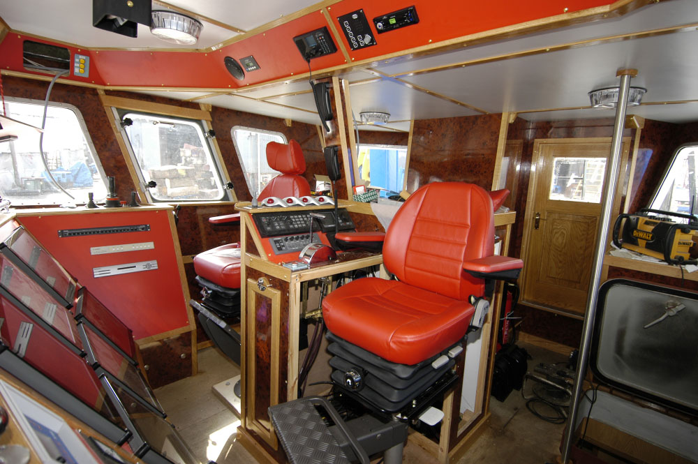 Main deck working area to have split trawl winches, hinged outrigger arms, dredge pulling in winches, with catch conveyors and dredge emptying doors incorporated into bulwark sides.