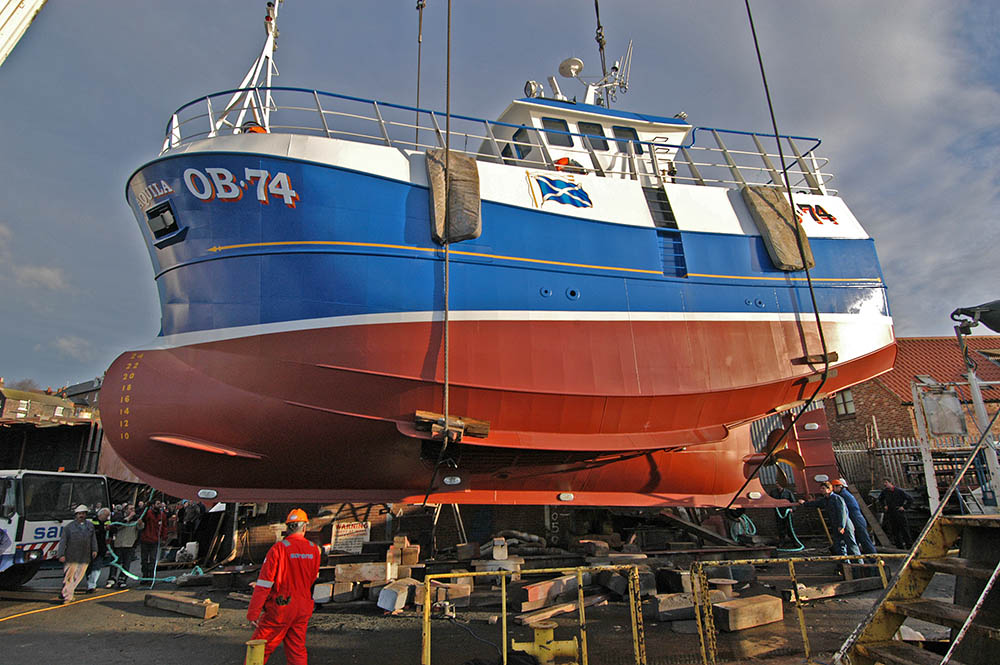 Steel hulled motor fishing vessel, of double chine, transom stern, semi bulbous bow, soft nose stem and with full length shelter, arranged for static gear creel fishing, fitted with a vivier tank, dry hold, bait store and manned by a crew of 5 men.