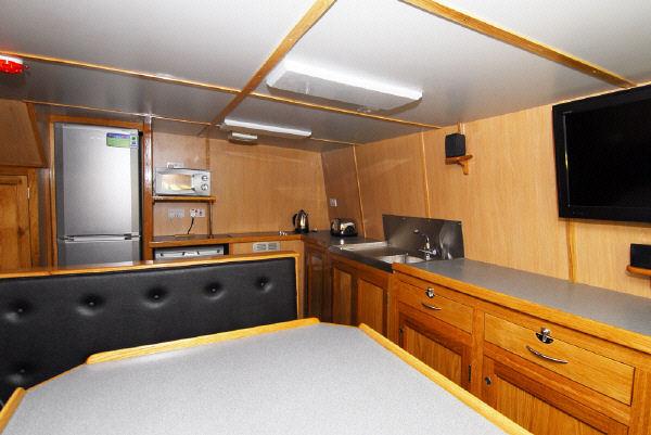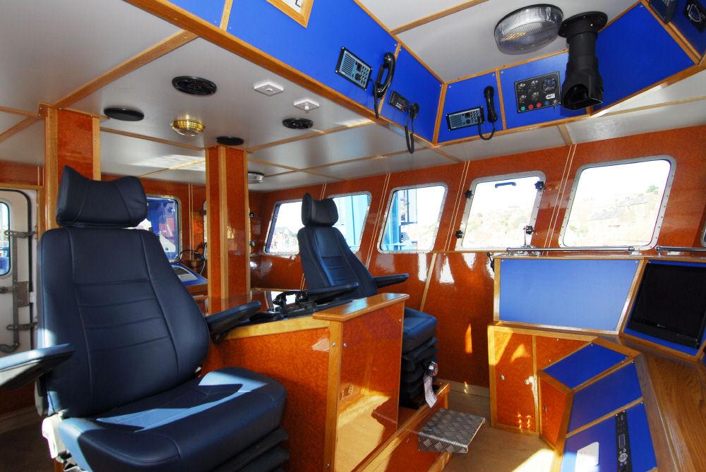 Below deck to be subdivided by three water tight bulkheads into: aft accommodation with steering gear, engine room, fish room and forepeak tank/store.